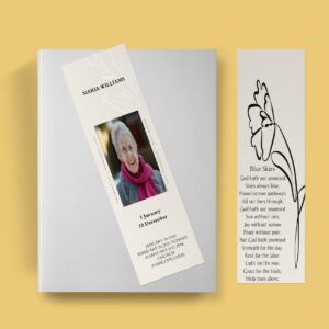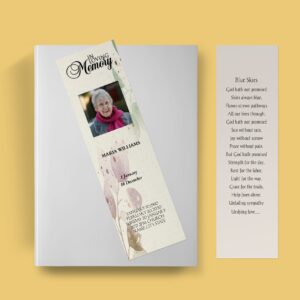 Beige Watercolour Flower Death Announcement Funeral Bookmark Template
