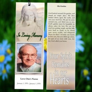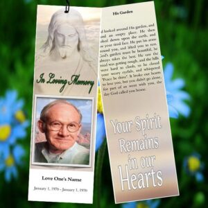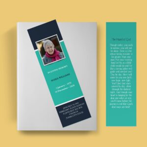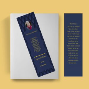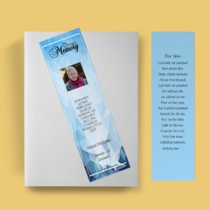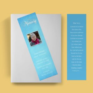 Blue and Green Bordered Photo Funeral Bookmark Template