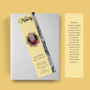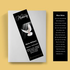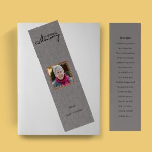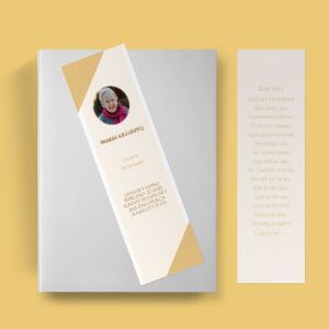 Monochromatic Beige Death Announcement Funeral Bookmark Template