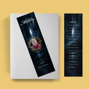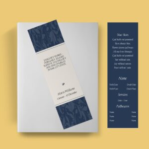 Navy Blue Vine Pattern Illustration Obituary Announcement Funeral Bookmark Template
