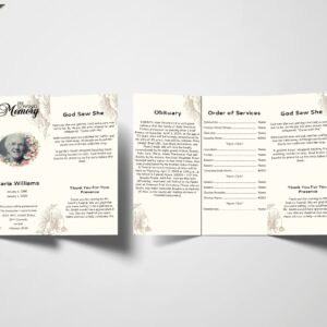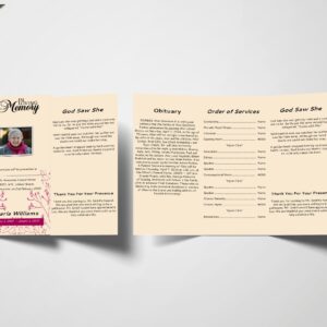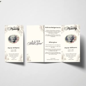 Beige Floral Feminine Trifold Funeral Program Template