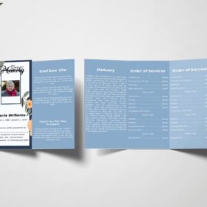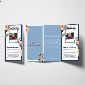 Blue And Beige Florals Trifold Funeral Program Template