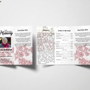 Blush Roses Trifold Funeral Program Template
