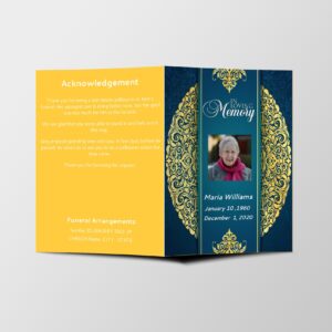 Elegant Gold Blue Half Page Funeral Program Template