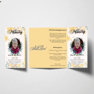 Cream Floral Hibiscus Illustration Trifold Funeral Program Template