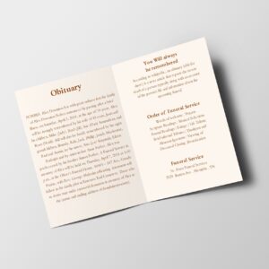 Monochromatic Beige Death Announcement Half Page Funeral Program Template