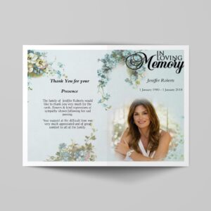 Soft Green and Grey Minimalist Floral Funeral Program Template