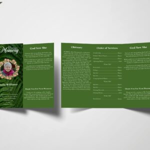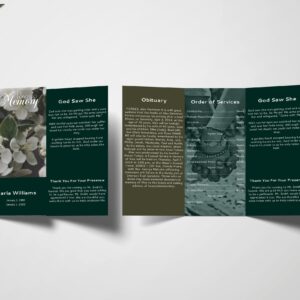 Dark Green & Brown Funeral Homes Brochure Trifold Funeral Program Template