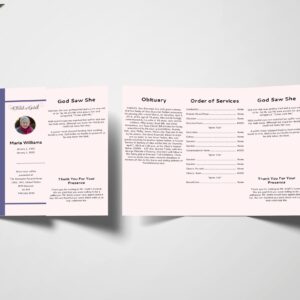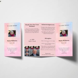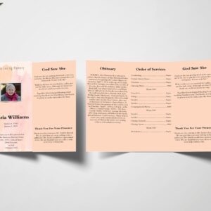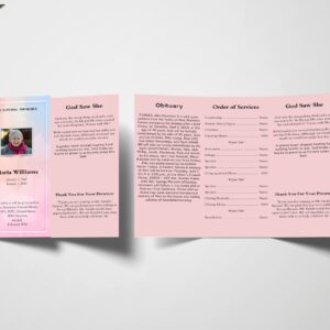 Dreamy Pink Women Special Trifold Funeral Program Template