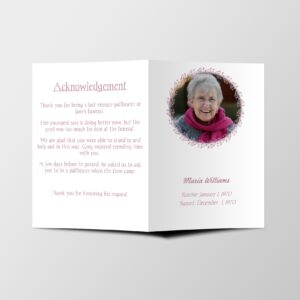 Pink Wreath Obituary Announcement Half Page Funeral Program Template
