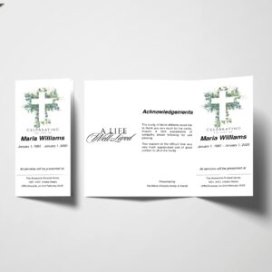 Cream Floral Hibiscus Trifold Funeral Program Template