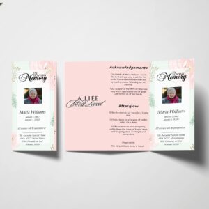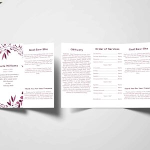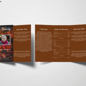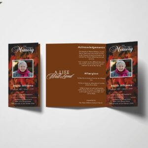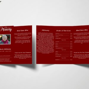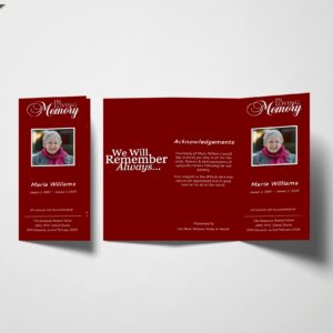 Maroon Wreath Memorial Service Trifold Funeral Program Template