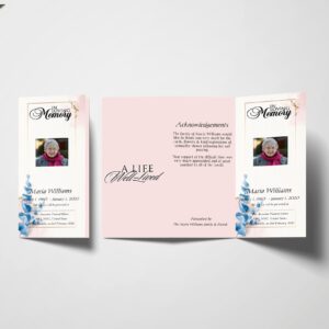 Navy Blue Vine Pattern Illustration Obituary Announcement Trifold Funeral Program Template