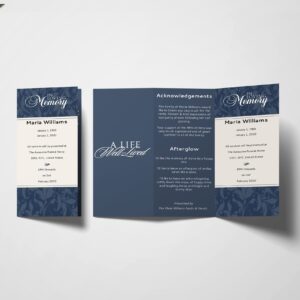 Navy Blue Vine Pattern Trifold Funeral Program Template