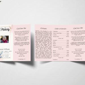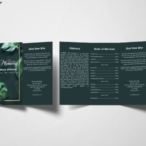 Green With Field Photo Obituary Program Trifold Funeral Program Template
