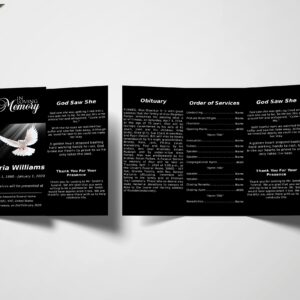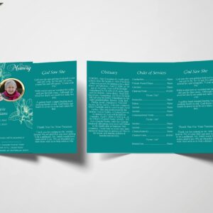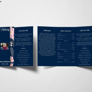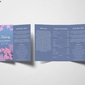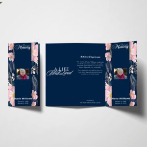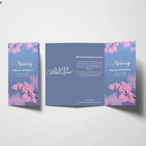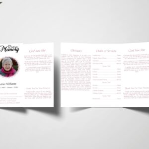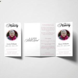 Pink Wreath Obituary Announcement Trifold Funeral Program Template
