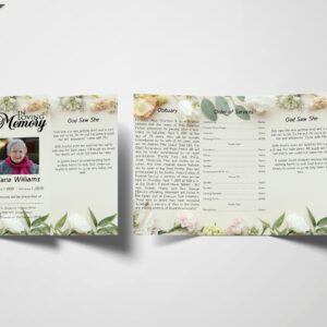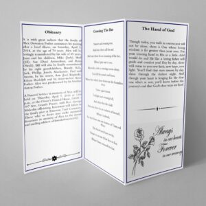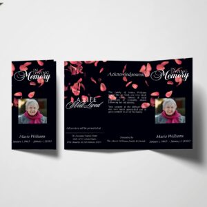 A beautiful Trifold 8.5 x 11 Funeral Program template called “ Black Candle Light Trifold Funeral Program Template “. This tri-fold Black Candle Light Trifold Funeral Program Template contains Floral background with floral and golden inside pages, which gives an appealing look to printable tri fold funeral program.