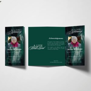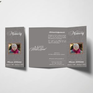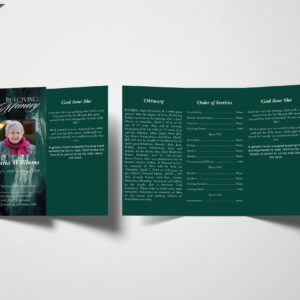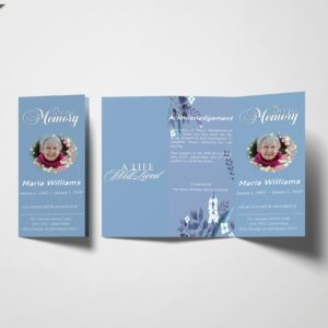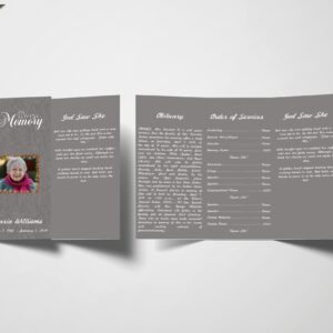 This Blank TriFold Funeral Programs Template contains 3 folds with 6 editable and printable sides where you can add your own content such as order of service details and other funeral service details.