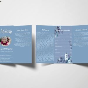 A Tri-Fold Funeral Program template called “Blank TriFold Funeral Programs Template“. This trifold funeral program template contains blank page their you can design your program as per your requirement.