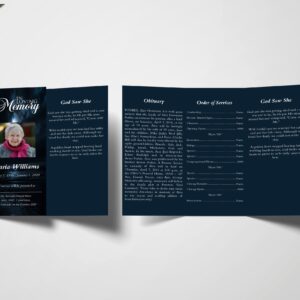 This Blue Curtain Trifold Funeral Program Template 3 folds with 6 editable and printable sides where you can add your own content such as order of service details and other funeral service details.