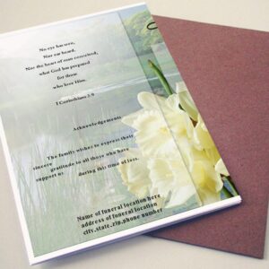 There are actually many other designs and sizes of programs that a funeral director will help you with. You can also shop online with a variety of sites that specialize in helping you to design programs and will have many funeral templates for programs available for you to choose from.