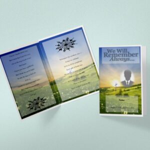 There are actually many other designs and sizes of programs that a funeral director will help you with. You can also shop online with a variety of sites that specialize in helping you to design programs and will have many funeral templates for programs available for you to choose from.