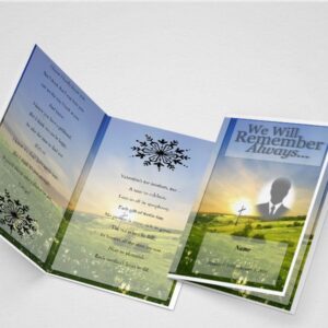 The very light greenish color in the background of this beautiful funeral program template is associated with resurrection and regeneration, giving us strength to cope with adversity. Experiment with this format on any burial service program as the content boxes in these are editable and simple to utilize.