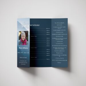 There are actually many other designs and sizes of programs that a funeral director will help you with. You can also shop online with a variety of sites that specialize in helping you to design programs and will have many funeral templates for programs available for you to choose from.