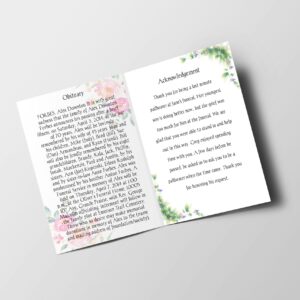 There are actually many other designs and sizes of programs that a funeral director will help you with. You can also shop online with a variety of sites that specialize in helping you to design programs and will have many funeral templates for programs available for you to choose from.