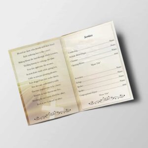 This Green Floral Funeral Template contains 1 folds with 4 editable and printable sides where you can add your own content such as order of service details and other funeral service details.