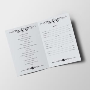 There are actually many other designs and sizes of programs that a funeral director will help you with. You can also shop online with a variety of sites that specialize in helping you to design programs and will have many funeral templates for programs available for you to choose from.
