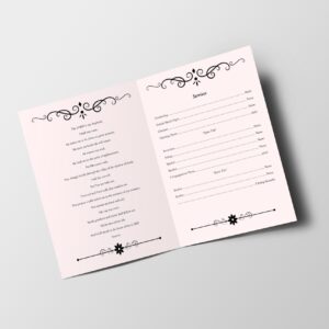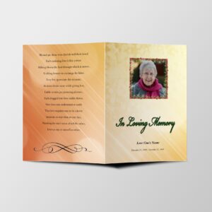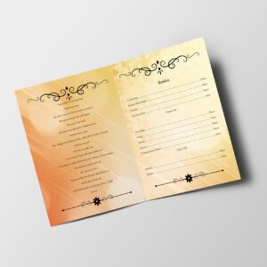 This Marble Texture Tabloid Funeral Program Template Template contains 1 folds with 4 editable and printable sides where you can add your own content such as order of service details and other funeral service details.