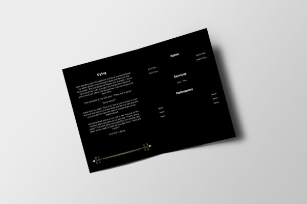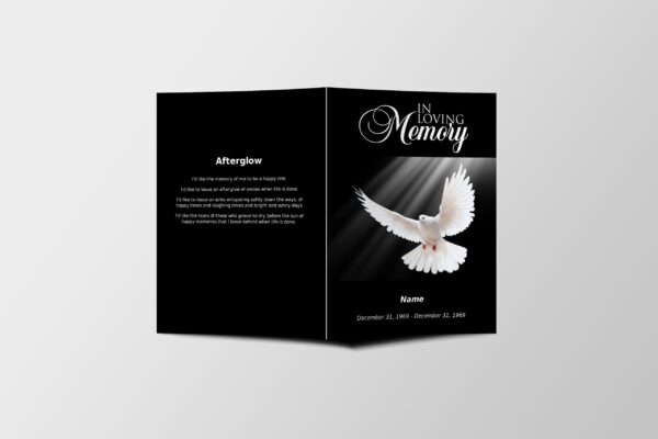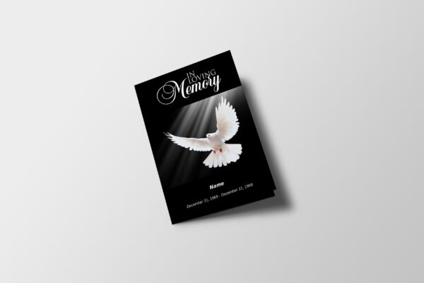 This Peaceful Dove Tabloid Funeral Program Template Template contains 1 folds with 4 editable and printable sides where you can add your own content such as order of service details and other funeral service details.