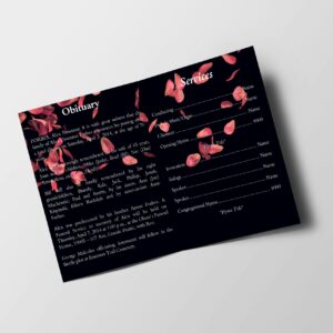 There are actually many other designs and sizes of programs that a funeral director will help you with. You can also shop online with a variety of sites that specialize in helping you to design programs and will have many funeral templates for programs available for you to choose from.