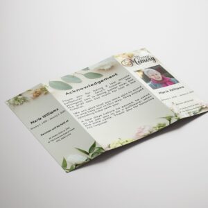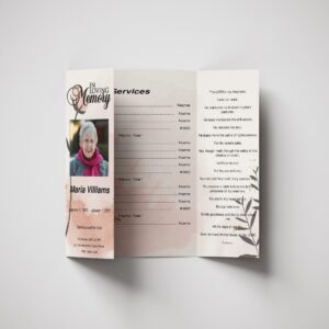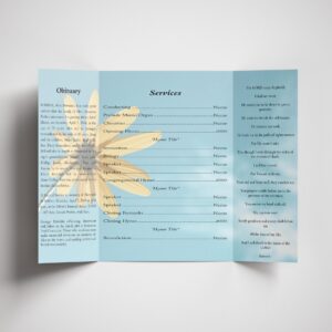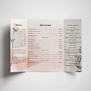 There are actually many other designs and sizes of programs that a funeral director will help you with. You can also shop online with a variety of sites that specialize in helping you to design programs and will have many funeral templates for programs available for you to choose from.