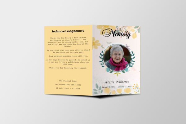 There are actually many other designs and sizes of programs that a funeral director will help you with. You can also shop online with a variety of sites that specialize in helping you to design programs and will have many funeral templates for programs available for you to choose from.