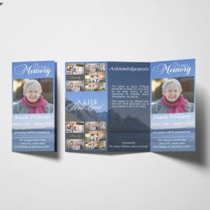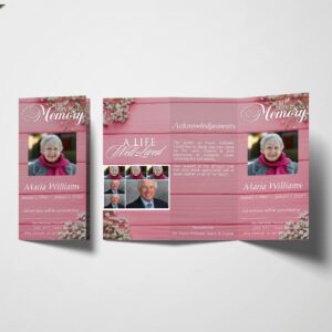 This Spring Flowers Trifold Funeral Program Template 3 folds with 6 editable and printable sides where you can add your own content such as order of service details and other funeral service details.