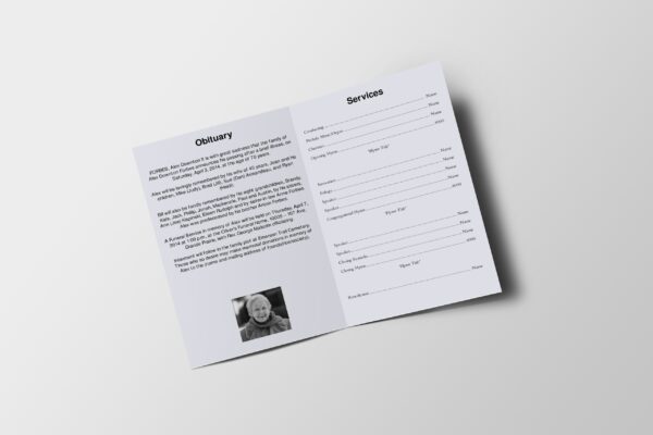 There are actually many other designs and sizes of programs that a funeral director will help you with. You can also shop online with a variety of sites that specialize in helping you to design programs and will have many funeral templates for programs available for you to choose from.