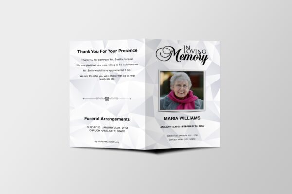 Searching for a White Diamond Funeral Program Template that is easy to print has a cutting-edge look? This White Diamond Funeral Program Template Letter Size is the Perfect decision that is having a measure of 8.5”x 11”.